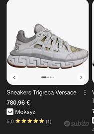 Come da titolo vendesi sneaker uomo Versace modello Trigreca, taglia 42, con dettagli stile barocco iconici del brand. Prezzo di listino oltre 900€. Prezzo attuale online di circa 700€. Sarà venduta con scatola originale e sarà effettuato lavaggio e sanificazione professionale.