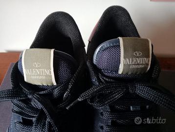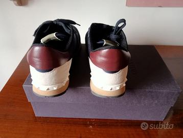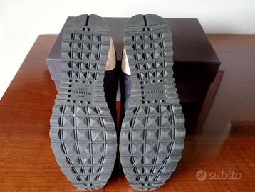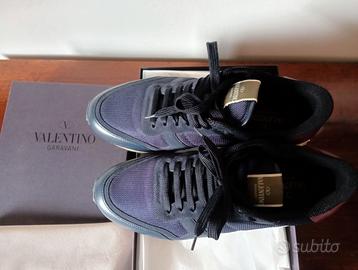 Sneaker Valentino Garavani Rockstud in pelle e tessuto di colore blu, completo di scatola originale, accessori vari inclusi. Numero 42 regolare.
