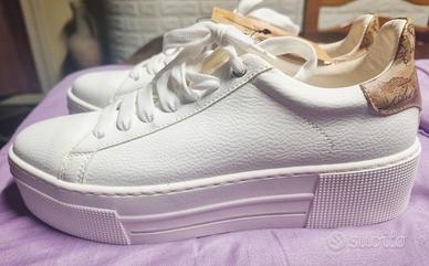 Sneaker zeppate in eco nappa bianche 1° Classe, misura 38