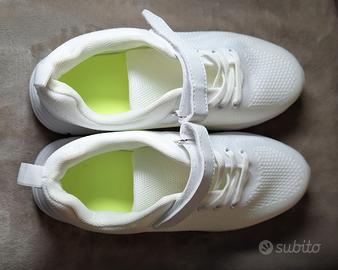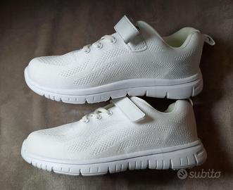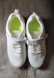 Sneakers scarpe da ginnastica donna o bimbo nr. 36/37 nuove. Tomaia in tessuto traforato, suola gommata antiscivolo. Con solette antiodore. Chiusura a velcro.
