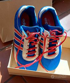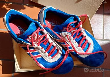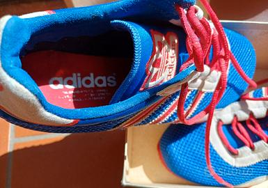 sneakers Adidas bluette, rosso, bianco lacci rossi suola gomma numero 38FR 5UK