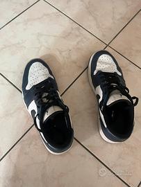 Un paio di scarpe Air Jordan 1 blu basse in buone condizioni.