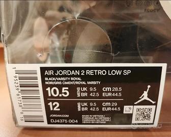 Sneakers Air Jordan black/Varsity Royal - Noir/Gris Ciment/Royal Varsity, Taglia 44.5. Nuove, in scatola originale.