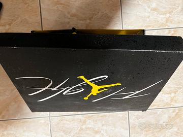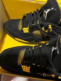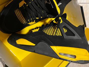 Sneakers Air Jordan 4 Retro in nero e giallo, in ottime condizioni visibili. ⭐️ Condizione: 9/10 🎨 Colore: Nero e giallo 📦 Spedizione veloce e accurata