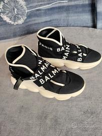 Stupenda Sneakers alta Balmain NU 37 in pelle rifiniture in nylon usato ma in ottima condizione