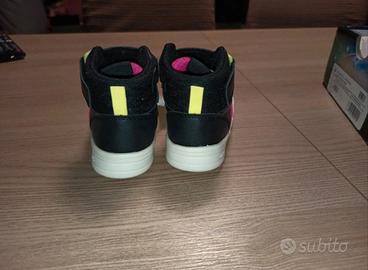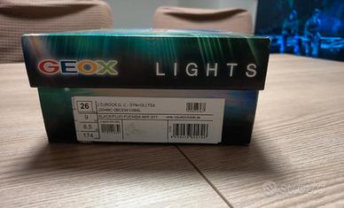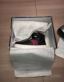 Scarpe Geox con chiusura strappo colore nero giallo+fucsia fluo. Le scarpe sono nuove mai usate ancora con etichetta e scatola originale. Si tratta di un modello con gioco luci (Geox Lights-possibilità invio video per verifica funzionamento luci).