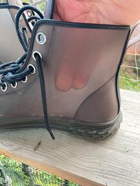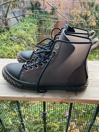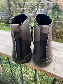 Sneakers alte modello Blabber dello stilista italiano Giuseppe Zanotti. Colore marrone, taglia 41, con la caratteristica di essere trasparenti (jellyfish). Praticamente nuove, usate poche volte. Logo impresso su etichetta. Suola blabber in gomma marrone.