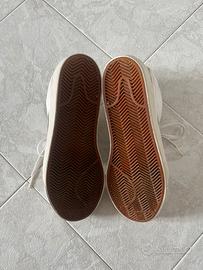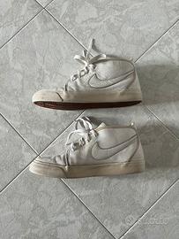 Scarpe sneakers alte Nike modello Toki bianche, in pelle. Condizioni usate, con segni evidenti di utilizzo (vedi foto). 👉 Ideali per personalizzazione, custom o utilizzo quotidiano senza pensieri. Suole ancora in ottime condizioni. #nike #toki #sneakers #custom #vintage