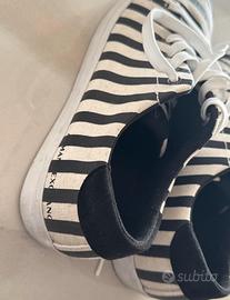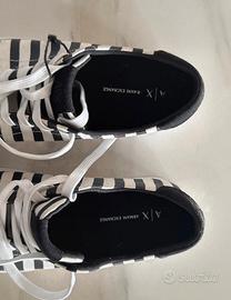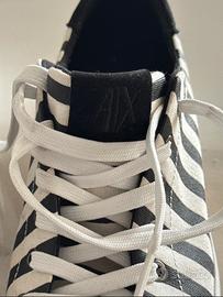 Sneakers Armani Exchange b&w a strisce con lacci Taglia 40 scritta sulla scarpa, ma veste piccolo circa 38,5-39 Taglia sulla scarpa UK 6,5 US 8 CN 255/85 Conservata senza scatola originale per quello c’è qualche segno sulla suola facilmente rimovibile