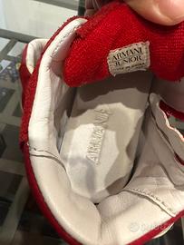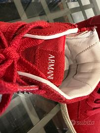Sneackers rosse scamosciate Armani junior Taglia 34 Utilizzate due volte e poi scappatobil numero, Soletta interna immacolata