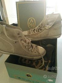 Scarpe scamosciate ASH originali mod.alte TG 42 in ottime condizioni.Sono di color sabbia, possibilità di provarle e vederle