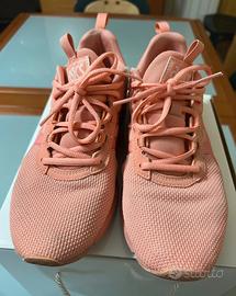 Vendo scarpe Asics rosa, taglia 40 senza scatola. Condizioni buone, segni di usura visibili nelle ultime due foto, per il resto in ottimo stato.