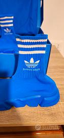 Balenciaga X Adidas Speed Trainer Blu Bianco - Sock sneakers, in maglia, tinta unita con applicazioni, brand logo, punta tonda, interno in tessuto, suola in gomma