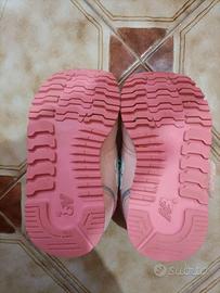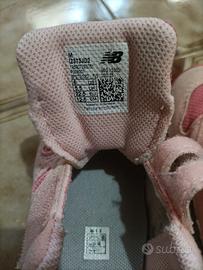 Sneakers New Balance primi passi modello 373, colore rosa/fucsia, doppi strappi in velcro per una calzata facile e regolabile, materiale scamosciato e tessuto sintetico, suola in gomma, condizioni perfette ma no scatola originale. Misura del piede 12.5 cm.
