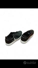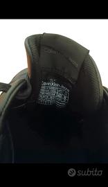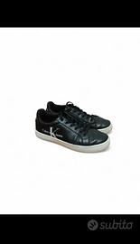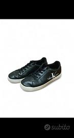 Sneakers vintage basse di Calvin Klein Jeans in pelle nera. Ideali per un look casual ma curato, perfette per l'uso quotidiano. Colore: Nero con suola e logo bianchi. Dettagli: Grande logo "Calvin Klein Jeans" stampato in bianco sul lato esterno. Chiusura con lacci neri. Suola in gomma bianca. Stato: Usate, ma in buone condizioni. Segni di normale utilizzo, specialmente sulla suola e sui bordi (vedi foto per i dettagli). Vestibilità: Calzata comoda e fedele alla taglia. Disponibile per scambio a mano a Roma. Scrivimi per info e foto!