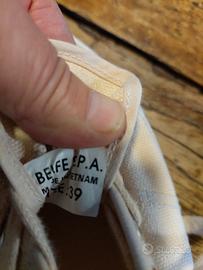 indossate una volta in interni. in tela bianca ( panna) con lacci.marca belfe