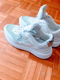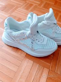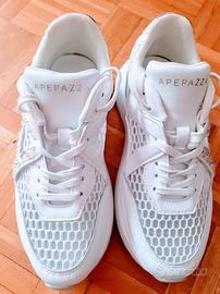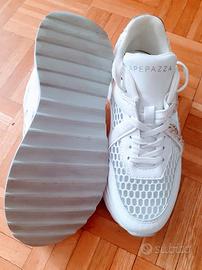 stupende sneaker bianche retate con pietre brillanti nr 38 marca apepazza by pierre indossate solo una volta per prova e rimesse nella scatola originale valore nuovo 149,00 euro