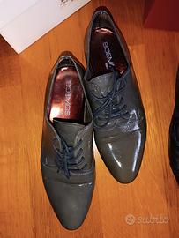Sneakers BOEMOS n.37 da donna, in vera pelle verniciata grigio verde scuro, con suola in gomma e lacci.