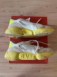 Sneakers Bubbleback Valentino Garavani in mesh e camoscio bianche e gialle. Taglia 43,5. Suola perfetta, usate pochissimo. Sono da pulire.