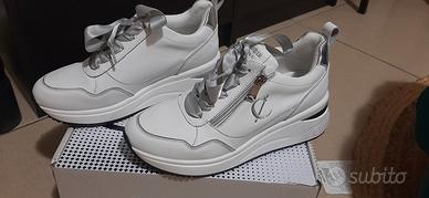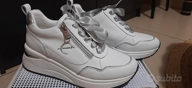 Sneakers da donna in pelle rivestita con cerniera ornamentale laterale. Soletta estraibile. Taglia 38.