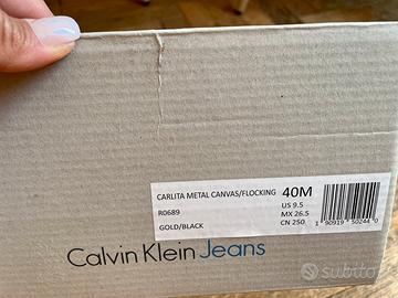 Vendo sneakers Calvin Klein Jeans numero 40 in pelle d'orata e camoscio nero. Suola in gomma bicolore bianco e nero. Usate pochissimo come nuove.