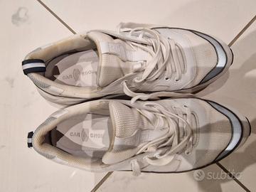 Vendo sneakers Car Shoe originali da uomo, colore bianco con inserti grigio chiaro.