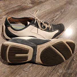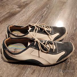 Vendo un paio di scarpe Clarks da uomo, in pelle beige e nera. Sono in ottime condizioni, perfette per il periodo primavera estate