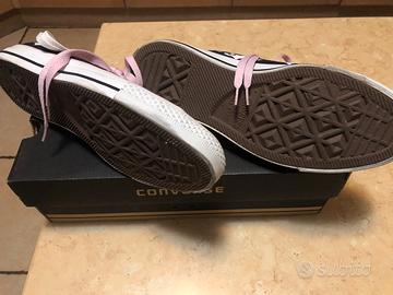 Per inutilizzo vendo sneakers Converse Chuck Taylor basse con cuori bianchi su sfondo blu e lacci rosa/e o bianchi.
