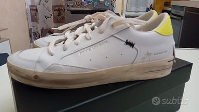 sneakers da uomo Crime bianca con giallo ed effetto vintage