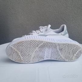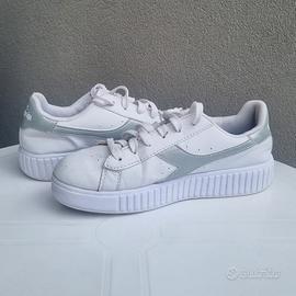 Vendo bellissime sneakers Diadora Game Step da donna in ottime condizioni di conservazione. DETTAGLI: - Modello: Game Step - Marca: Diadora - Colore: Bianco con dettagli argento metallizzato - Taglie: 38 EUR / 5.5 US / 5 UK - Codice prodotto: 101.176595/C6103 - Materiale: Upper in similpelle bianca - Suola: Platform con effetto gommato antiscivolo CONDIZIONI: Ottime - scarpe poco utilizzate, segni minimi di usura normali. Suola pulita, tomaia integra, lacci originali inclusi.