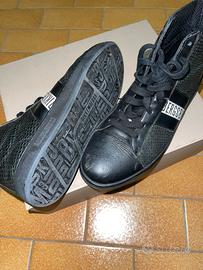 Sneakers Bikkembergs in linea con le ultime tendenze moda streetwear che richiamano il mondo sportivo del basket. Alte sino alla caviglia, queste Sneakers multicolor sono realizzate in pelle nera con inserti di colore verde e bianco. La vestibilità è favorita dalla zip laterale. Fondo antiscivolo in gomma bianco con battistrada nero. Dal look modaiolo, questo modello non può mancare nel guardaroba della stagione invernale!