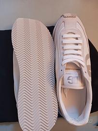 Mai indossate, includono la sacca originale nera. Color bianco, eleganti e sportive al tempo stesso. Realizzate in pelle scamosciata bianca e poliestere, punta tonda, chiusura con lacci, etichetta logo su linguetta, dettaglio stampa logo "DG" incrociato grigia, logo impresso su tab retro, suola in gomma.