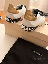Eleganza contemporanea e stile inconfondibile: vendo splendide sneakers Dolce & Gabbana modello Portofino, una delle icone più amate della maison italiana. Le scarpe sono state indossate una sola volta per un evento e sono in condizioni pari al nuovo, come chiaramente visibile dalle foto. Una combinazione perfetta tra la purezza della pelle bianca e il tocco luxury dell'oro laminato. Dettagli del prodotto: Modello: Portofino Sneakers. Taglia: 42. Colore: Bianco/Oro (Cod. 89662). Materiali: Pregiata pelle di vitello con suola in gomma logata. Dettagli estetici: Iconico maxi logo "Dolce & Gabbana" gommato sul retro e tallonetta in pelle oro texturizzata. Condizioni e Set Completo: Stato: Usate una sola volta, impeccabili. Documentazione: Ricevuta d'acquisto originale disponibile (garanzia totale di autenticità). Packaging: Vendute con corredo completo originale: scatola integra e dust bag nera logata. Un’occasione imperdibile per acquistare un pezzo iconico di D&G in condizioni da negozio a un prezzo vantaggioso. Spedizione rapida e tracciata. Resto a disposizione per qualsiasi chiarimento o per inviare copia della ricevuta in privato.