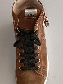 Sneakers alte, colore marrone chiaro, scamosciate, con cerniere laterali. Comodissime e mantenute perfettamente. TAGLIA 37. VERA PELLE.