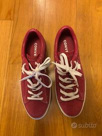 Sneakers donna Converse All Star. Color magenta e stella bianca, scamosciate e con para alta 4 cm. Taglia 7 woman US, 38EU. Indossate una sola volta.