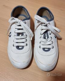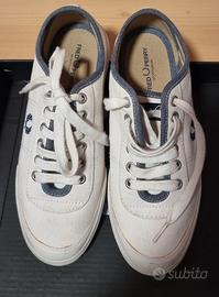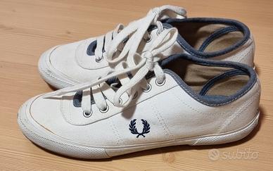 Sneakers donna Fred Perry originale, bianche e blu, taglia 38, in tessuto
