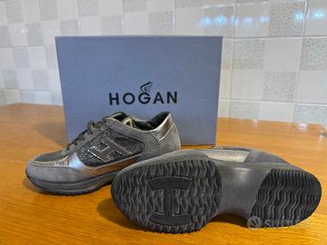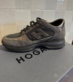 Scarpe Hogan Interactive n.35,colore grigio antracite, usate pochissimo e come si vede dalle foto sono come nuove. Complete di scatola e borsa scarpe in stoffa nuova,mai usata