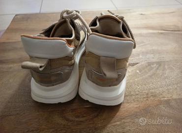sneakers donna Momo Design marrone e beige tomaia in tessuto e pelle suola bianca in gomma. n 37