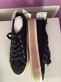 Sneakers donna nuove con cartellino, zeppa in corda ,resto in tessuto,numero 37