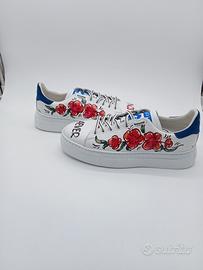 sneakers donna in pelle pitturate a mano con fantasia fiori tutto made in Italy con soletta Memory per rendere le tue passeggiate confortevoli