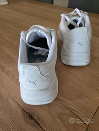 Scarpe da ginnastica Puma originali, modello sportivo e moderno, completamente bianche con logo tono su tono. Perfette per un look casual o athleisure.