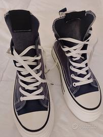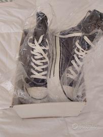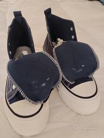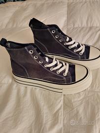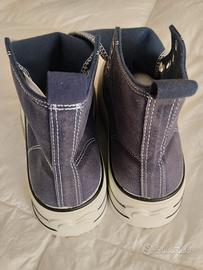 sneakers tipo All Stars da uomo e donna due numeri disponibili 38 e 40 molto robuste suola molto spessa in gomma, tessuto cotone blu vintage