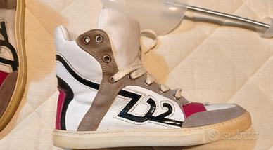 Dettagli:Logo "D2" stilizzato laterale con finitura lucida,occhielli metallicie lacci bianchi.