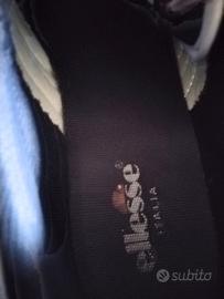 Sneakers uomo, modello basso stringato in similpelle bianca con finitura color rosso sulla tomaia, interno blu. Misura EUR 41.