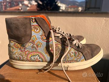Sneakers ETRO stampa cachemire sui colori tortora/celeste.Vintage.