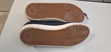 Vendo sneakers Fred Perry originali, modello sportivo, in suede blu con dettagli bianchi e marroni. Le scarpe sono state usate 2 volte ma sono in ottime condizioni, come visibile dalle foto.