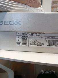 Vendo sneakers Geox donna Fluctis taglia 36 nuove, mai indossate con cartellino e scatola originale.la scatola in un angolo è leggermente rovinata ma le scarpe dentro sono perfettamente integre nuove e senza difetti.se volete posso inviare altre foto o video.Spedizione a carico di chi acquista.