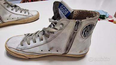 vendo golden goose mod Francy alte alla caviglia white and silver, modello invecchiato