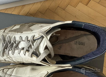 Golden Goose Superstar originali, in discrete condizioni. Sono state indossate molto, con qualche crepa nella vernice e qualche graffio sulla suola. I tacchi sono in buone condizioni. Taglia 42 (27 cm con soletta).