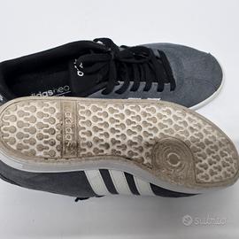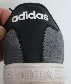 Sneakers Adidas in tonalità grigio e bianco, adatte sia per uomo che per donna. Design sportivo e casual. - Toma in materiale scamosciato. - Strisce laterali a contrasto. - Chiusura con lacci. - Logo sul tallone e sulla linguetta.